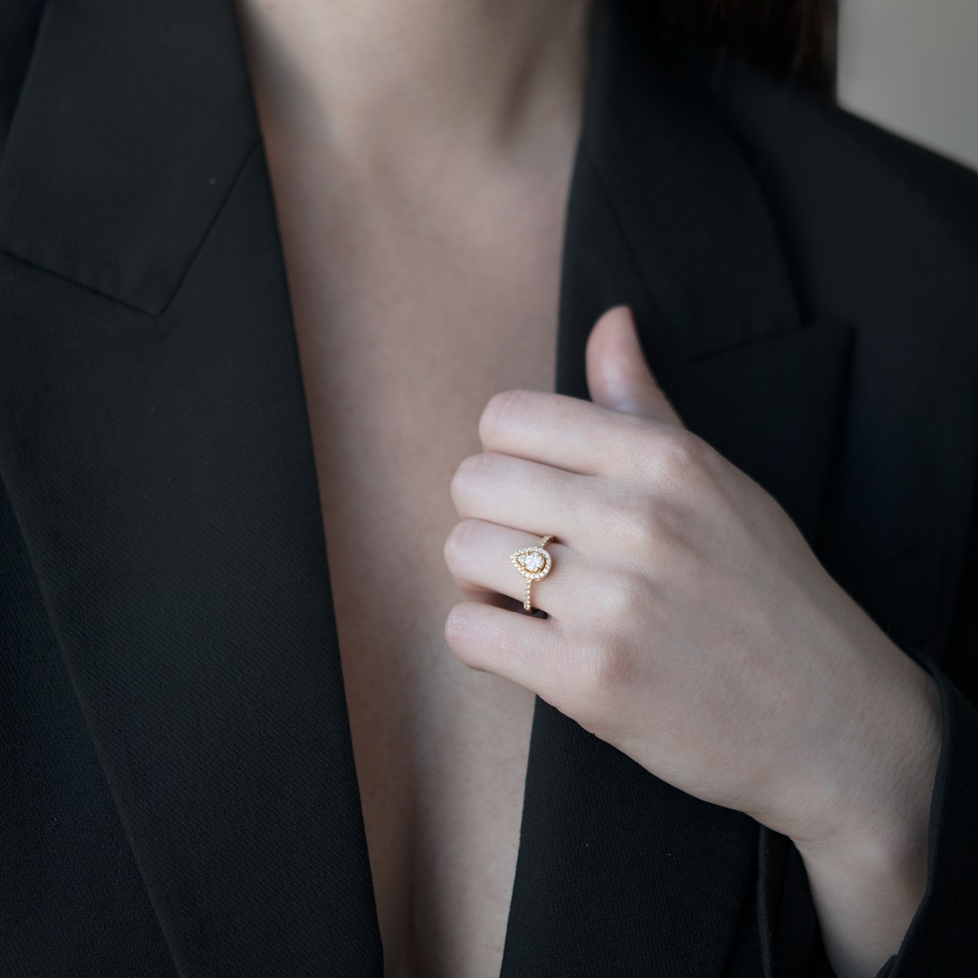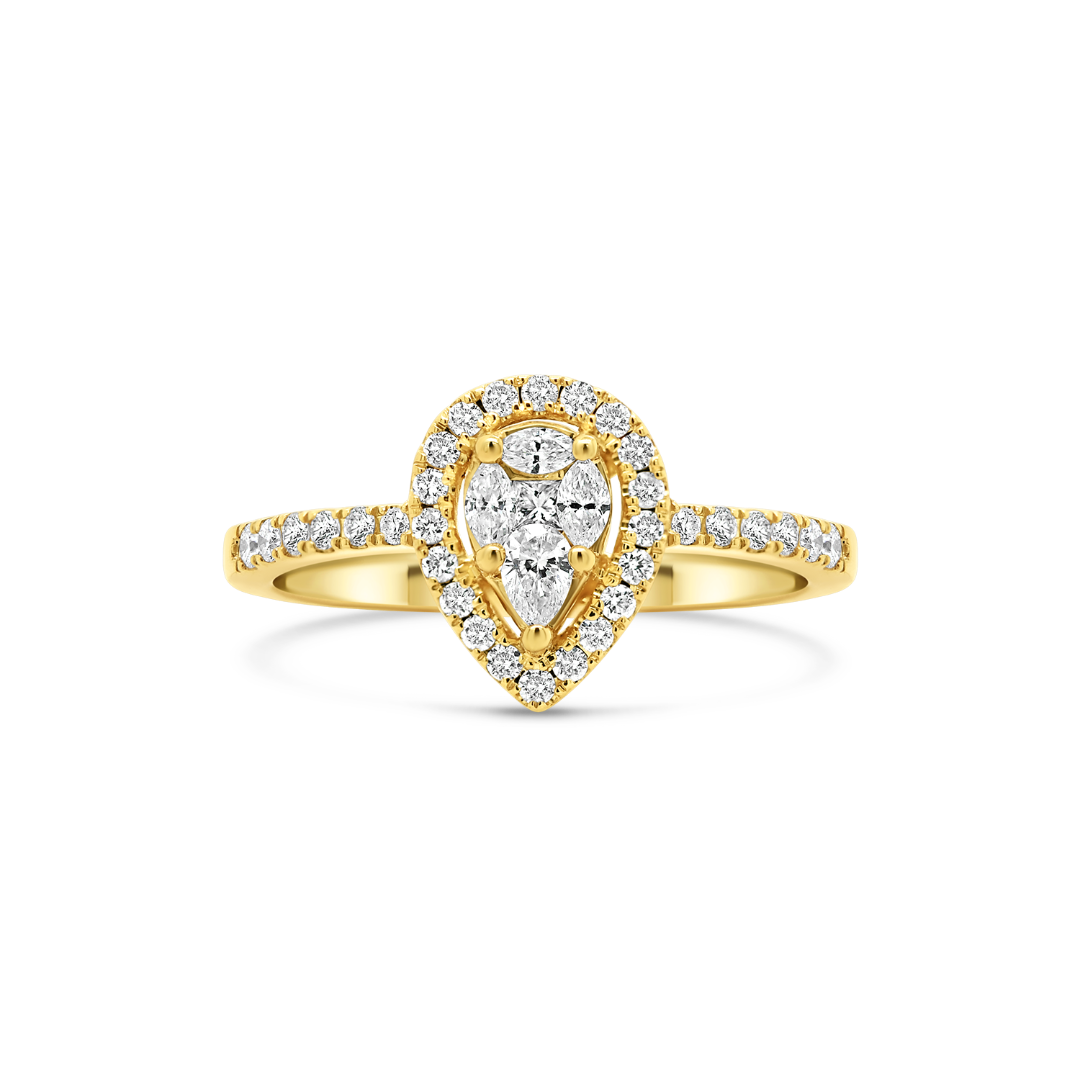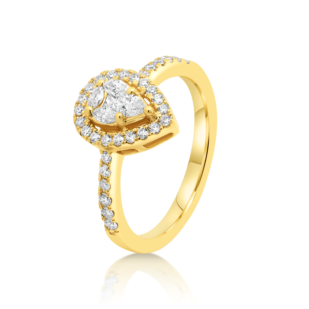 Inel de logodnă din aur galben de 18K cu Diamante Princess, Pear, Marquise și Brilliant cut.